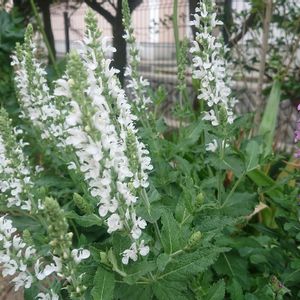 今日のお花 サルビア・スペルバ・ボルドー ホワイト 『ボルドー』なのにホワイト…🤍 6月に花壇にきた1年生 今のところ…草丈30〜40㎝。 花付きが良くて、比較的真っ直ぐ上に伸びてくれて支柱要らず。 病害虫の被害も無く、育てやすいです👌🏻 ①2ヶ月前 ②違う角度からの現在のようす