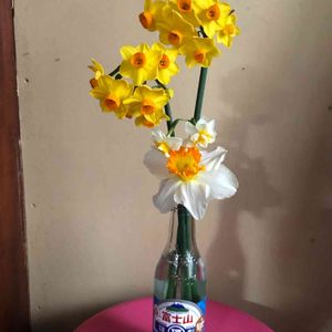 風で倒れていたスイセン達を空瓶に! スイセンのみもいいですね☺️