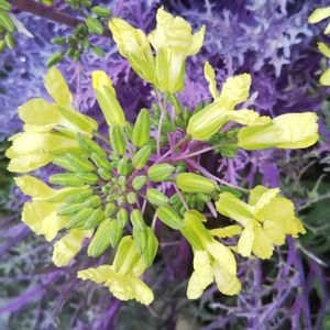 こんばんわ(^o^)/ 今季初めて育てた葉牡丹の花芽がグングン伸びて、下から花が咲いてきました🌼 ふと先端に目をやると、素晴らしい紫と黄色の 反対色のコラボになってました💜💛 この美しさに気づけて嬉しい💫 ※2つ前の記事でフォロワー様限定で 七福神の嫁入り先募集をしています 良かったらご覧ください🎵