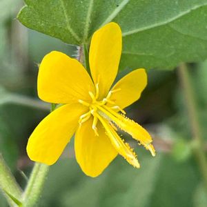 野に咲く花 花の中央から仮雄蕊が 特別に長く突き出しています🎶 (雄蕊は短い) 花は直径約1.8cm 黄色い5弁花 を横向きや斜め下向きに付ける😍 烏の胡麻(からすのごま)🐦⬛ アオイ科