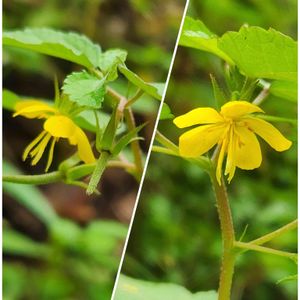 カラスノゴマ 雑木林で黄色いお花を見つけました☺️✨ 花の真ん中から5本の長い仮雄蕊があるのが特徴的💡