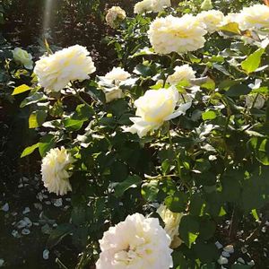 2020.11.1 港の見える丘公園で快挙という品種の薔薇が咲いていました✨ 🥀快挙 (Kaikyo) 快挙は京成バラ園芸が2000年から10年間の試行錯誤を経て作出された名花です。 ボリュームがある花姿で、清楚な雰囲気のある薔薇です。 開ききるとロゼット咲きになり、オールドローズのような花姿で完全に開きながら花もちもよい薔薇。 やや薄緑がかるクリームイエローで弁端が白色です。 葉はつやがなく、黄緑色から薄い緑色に変わります。 枝は初め細立ちですが、夏以後よく伸びます。 耐病性は、うどんこ病に弱く黒星病には普通。 * 作出国:日本 * 作出年:2011年 * 作出者:京成バラ園芸 * 系統:[HT] ハイブリッドティー * 交配親:実生 × 実生 * 咲き方:四季咲き * 花形:ロゼット咲き * 花径:大輪(11cm・花弁数26~40枚) * 香り:中香(ティー系) * 樹形:半直立性 * 樹高:160cm