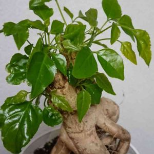 ガジュマルのような太い根っこが魅力的。 ヘテロパナックス。 私には、ガジュマルより気難しく繊細に思える。 根っこは太いけど、葉は繊細。 私の管理はわりとスパルタ。 このコには、ちと水不足だった模様😅💦 頑丈なコが多いと、どうしてもね(笑)