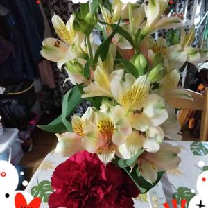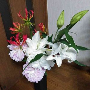 今日は母の月命日 はるちゃんがチョイスしてくれたお花🌸 八重の百合が素敵💐