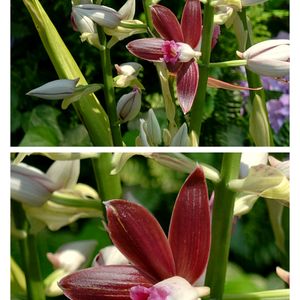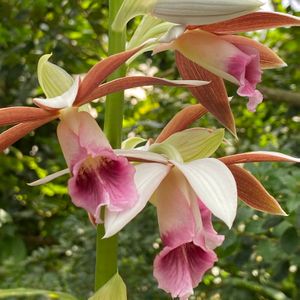 おはようございます😊 今日の天気は曇り☁️ 最高気温24度 最低気温20度 我が家の小さな花壇より🌸🌼💠 カクチョウラン(鶴頂蘭 )🌸 コチョウランに続いて カクチョウランも開花しました🌸 花茎を真っ直ぐに伸ばし 花は中央部分が濃いピンク色で 外側は白色で下向きに咲いています🌸 花姿は優雅で鶴が飛んでいる様に見えますね💕🦢 蕾も数えると8個有ります❣️ 🌸カクチョウラン (Phaius tankervilleae) 種子島以南、沖縄から東南アジア方面に 分布するラン科の大型の地生らん。 1mぐらいの花茎になり鶴が飛んでいるような花で その姿に見立て漢字で「鶴頂蘭」 花茎は高さ1mに達し見事な花を咲かせます。 花姿を鶴に見立てて 「鶴頂蘭」(カクチョウラン)という和名がつきました。 乱獲などで自生種は激減し県は絶滅危惧1B類(近い将来絶滅の危険性が高い種)に指定している。 カクランともいう。 花はシーミー(清明祭)の季節に咲き 花が終わると梅雨入りです☔️ 開花時期 3月~4月 今日も素敵な一日をお過ごしください💕🌸🌼💠
