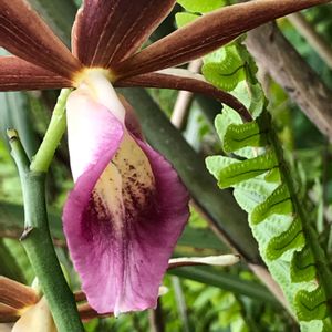 【カクチョウラン(鶴頂蘭、ファイウス)】 東南アジア~オーストラリア原産、ラン科多年草 日本では屋久島・種子島以南に自生する地生ラン。 1メートルにも及ぶ花茎を伸ばし、褐色~赤褐色の大きな花を咲かせる。 鶴が飛んでいるような花姿から、「鶴頂蘭」の名がついた。 環境省のレッドリスト(絶滅危惧種)に登録されている。 草丈:80~100cm程度 開花時期:4月~6月 花色:褐色~赤褐色 ときわミュージアム@宇部市