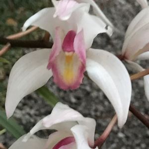 《「白花カクチョウラン」〜デンパークにて》 「カクチョウラン」は漢字では「鶴頂蘭」と表し、咲いた花の姿を鶴に見立てたものです🤗 属名のファイウスは「暗い」という意味の「ファイオス」にちなみ、カクチョウランの花の内側が暗褐色になるところに由来します🌼🌸