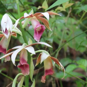 カクチョウラン(Phaius tankervilleae) 咲きました。 上から見たら真っ白だけど下から見たら色鮮やか。下向きに咲き、綺麗な姿をみせないきみは恥ずかしがりやですね。