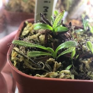 D.murfetti Tasmania島固有種のドロセラです。 自生地は夏でも20度以下の場所に自生しておりますので、栽培には冷蔵ショーケースが必須です。 我が家では総合すると2年維持しており、年々サイズアップしているので栽培方法は間違ってないようです。