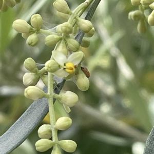 オリーブの花が咲き出しました クリ一ム色の小さな花