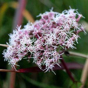 9月30日 今日のお花『フジバカマ』です。 【フジバカマ(藤袴)】 日本、東アジア原産、キク科多年草 「秋の七草」の一つで、万葉の時代から人々に親しまれてきた。 夏の終わりから秋の初め、茎の先端に直径5mmほどの小さな花を、長さ10cm前後の房状に多数咲かせる。 粒状のつぼみに花が咲くと、糸状の雄しべが伸びる。 日本には自生に適した環境が少なくなったため激減し、絶滅危惧種となっている。 草丈:60~120cm、 開花期:8月~10月 花色:白、ピンク 秋吉台@美祢市