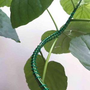 ウンベラータの曲げについて…は巻き巻きして好みの向きに曲げるんですけど。 (あくまで自己流ですよ😅) 園芸ワイヤーの先端を切りっぱなしで 巻き巻きすると、間違って葉っぱに先端が当たったりして簡単に破れます😭 そこで、ウッドビーズが再登場🔵🟠🟣🟢🟡 ウッドビーズをワイヤーに通してから 先端を短く曲げて、ビーズの幅で再度曲げて固定。 それを枝に巻き付ければ、誘引中の事故は防げますよ〜💚