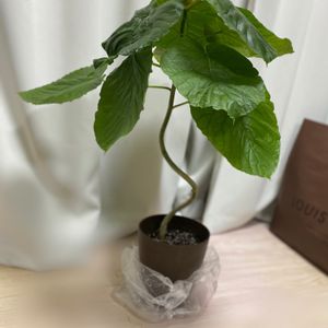 ネットで購入して 1月13日に届いた曲がりウンベラータ🪴 受け皿が無くビニール袋で代用。笑 ここ最近で1番育ててみたかったウンちゃん☺️ 成長がたのしみっ💓