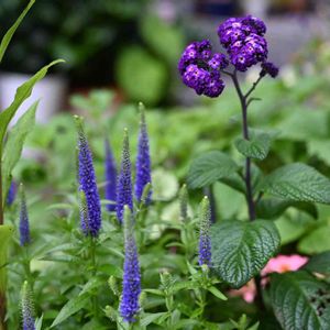 ベロニカとヘリオトロープが仲良く咲きました 冬は土だけの鉢になるのに、そこから芽吹いて花を咲かす宿根草の強さと健気さに毎年感動します (2024.5.21撮影)