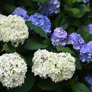 アナベルと紫色の紫陽花がどちらもら仲良く咲いています🤍💙 今年は剪定がうまくいき、沢山咲いてくれました 夫が調べてくれたのですが、咲き終わってすぐにニ節目をで切るといいそうです♫