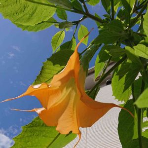従兄弟のおうちで見事に咲いてたエンジェルトランペットさん🧡
