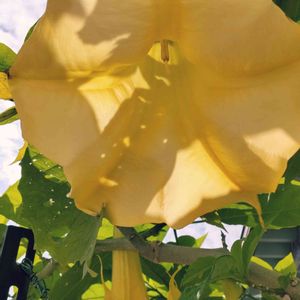 おはようございます♬ キダチチョウセンアサガオ 🏷日曜ビタミンカラー♪ 🏷幸せの黄色いお花 青空の下 元気いっぱい キラキラ✨ 輝いていました♡ トランペット🎺 の花びら💛✨から 音楽♬✨が 聞こえてきそうでした〜💛 今日も素敵な1日を〜✨ 💛🌿✨💛🌿✨💛🌿✨💛🌿✨