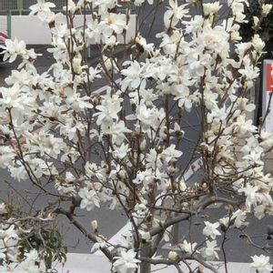 コブシの花です♪満開で花も散り始めてます。 バスターミナルに三本植えられていて この木の花がいっぱい咲いてました。