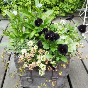 *寄せ植え* 前に植えていた シクラメンに変え、種撒きした、 忘れな草を植えました。 ちょっと 地味かなあ〰️〰️。