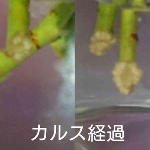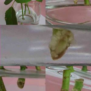 バラの水挿し メネデール希釈液に漬けて置いてから 水に挿し、カルスが出来ました🌹 手軽に挑戦出来て、発根の観察も 楽しめる。