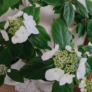 こんにちは😊 今日は寒いですね。 室内組のお花、紫陽花スプリングエンジェルがグリーンがかった白からブルーの色が出てきました。 冬紫陽花は水色になっています。