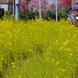 菜の花畑の向こうに桃の花が咲いて綺麗でした🌸🌸