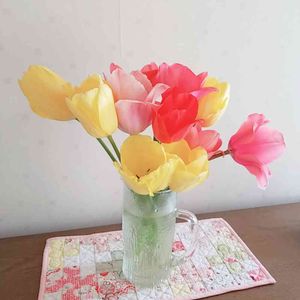 チューリップを切って生けました。 花壇の球根が大きくなり来年も綺麗に咲いてくれるといいなぁ、、🌷🌷🌷 新型コロナに負けない様に頑張りましょう🌿🌿☘☘