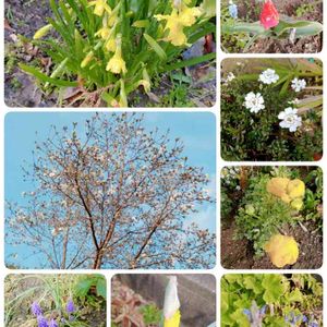 🌸庭の花🌸 ミニ水仙黄色 ノースポール ヒマラヤ雪の下 イベリス アネモネ クリスマスローズ 右下 つくしが沢山出ていました