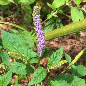 鶴ヶ鳥屋山 (1374.4m) ちっちゃな花、何ですか? ナギナタコウジュ?葉が違う… ナギナタコウジュ(薙刀香薷)、 シソ科ナギナタコウジュ属に分類される1年生草本 🌼 全体にシソ科植物特有の香気がある