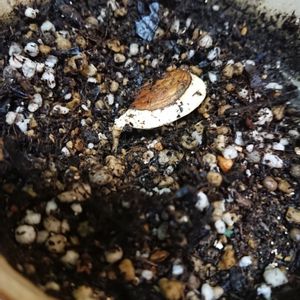おやおや‥‥🤔❓ 夏の終わりに食べた桃の種。 真っ白でキレイな種が出てきたから、空いてた鉢に放り込んでみたら。 なんと、 冬も越していないのに、発根してきた👀‼️ さて、無事に発芽してくれるかな? また埋めておきます(^^)💖