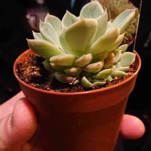 深夜エケベリア部 花月夜 鉢も葉もマットな風合いでいいなぁと だいぶ中心が丸まってきた