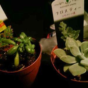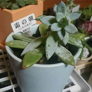 心身の疲れと季節の変わり目で崩した体調に休息を与えるために週末エケベリア 植物はいい…主に精神的に効く… てなわけで、今日は羽後ホーマックで散策 最近店頭によく並んでる葉牡丹が気になる今日この頃です フロスティーと紅稚児をお迎え モフみは最高の清涼剤ですわぁ… 紅稚児はだいぶ弱ってたみたいなんで、うちに迎えて回復するかどうかって感じ 例によって3個500円セールをやってたからいろいろ買いたかった(※)けど、流石に増やしすぎるのもアレだしと自制 (※)高砂の翁とかレモネード(アエオニウム)とか気になった (※)っていうか、トラデスカンチアって多肉だったのねカクトロコさん(白絹姫が多肉なだけなのかはわからん)