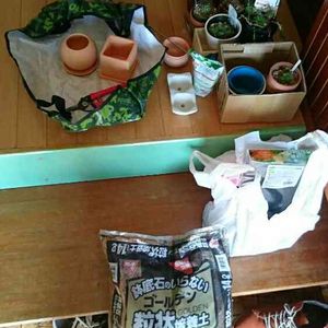 植え替えの準備じゃー めっちゃ晴れてるから外で作業したいけど、アネコ(カメムシ)が大量発生してて困り果ててるんで玄関内に退避じゃ 2日で5匹とかうじゃうじゃ沸いてるべこれ