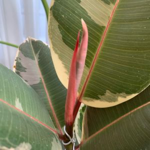 毎回恒例 フィカス・ティネケ🧡 の新芽です( *ˊᵕˋ)ノ 春になって葉っぱが 冬に出た葉っぱの倍くらいに なってます( ¨̮ )