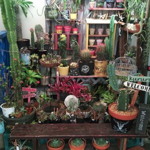 明日からサボテンまつり🌵🌵🌵 店内入口がカッコ良くなりましたよ💙 どうか明日晴れますように🙏 撮影用にベンチ用意しました😊