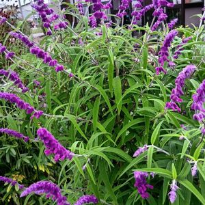 今晩は 雨が降る前にしました 二種のアメジストセージ 今年も綺麗に咲いてくれました ピンクのバラ新芽からの開花です カワイイですね(*´꒳`)ꕤ…˖*⊹⁺⸜(ᐡ⸝ɞ̴̶̷ ·̮ ɞ̴̶̷⸝ᐡ)⸝⁺⊹
