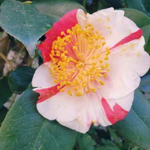 春散歩👣👭👣② 少しだけハイビスカス🌺っぽくも、A5ランク位の霜降り高級和牛🍖にも見えませんか? (私だけかな🤣) 山茶花❤️ 今日も素敵な1日を…𓆸 𓂂. .