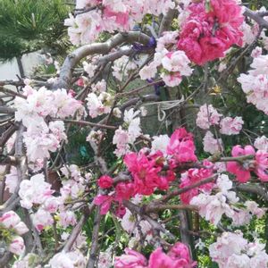 バイトの帰り道、 目を引かれたので🚲止めてパチリ…😄 1メートルくらいの木に沢山の可愛いお花が… 🌿🌸🍀🌼🌱💮🍃🌺🌳 梅かな? 色々な色のピンク…💖