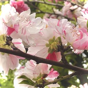 ゲンペイモモ ( 源 平 桃 ) 一本の木に紅白の花🌸が咲く 珍しい庭木です🌸 。 源平(ゲンペイ)桃🍑は、沢山有る ハナモモの品種の一つですが その他のハナモモも 江戸時代の 初期に品種改良が行われて 流通しました🌸 。 花桃は花🌸を観賞する為に 作られたので 実は小さくて 食べる😋事は出来ません😣 花桃🌸の品種 色々 ① 矢口 : ひな祭りに飾る 桃🍑の花 ピンクの八重です🌸 ② 菊桃 : 菊に似た花を咲かせます🎵 ③ 照手紅(Terute beni ) 、照手白 : 庭木として植えると見映えが良いです 。 3月15日に 照手紅は投稿して有ります🎵 ご覧くださいネ🤗⤴️ ④ 唐桃 : 盆栽に使われる低木で 密集した花🌸が咲きます 。 2019年 4月 11日 パート先にて 📱 撮 影 🌸