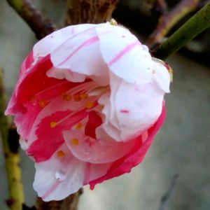 今日のお花 モモ うちのは源平桃🍑一昨年4月撮影 一本の🌳に白、ピンク、赤、絞り模様と色々咲きます。