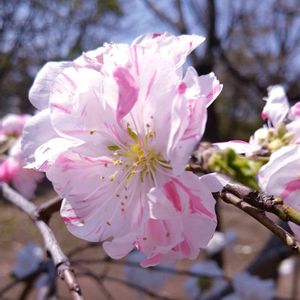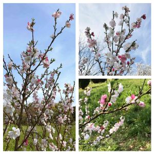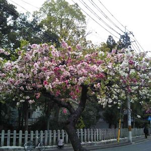 1本の木に白、淡桃、濃桃の色の花が咲いていました。 なんの木だろう?