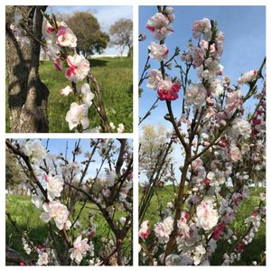 🌸花桃(源平桃)🌸 1本の木に桃色・赤色・白赤桃色の絞り柄の複色咲きで、とっても華やかな🌸花桃でした🤗