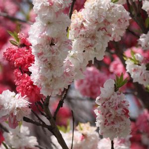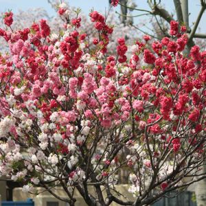 ひとつの木に三色の桜の花?と思って調べてみたら、源平桃と言う花桃のようです。艶やかな花ですね。