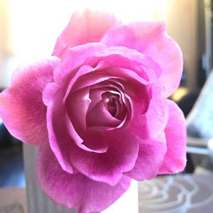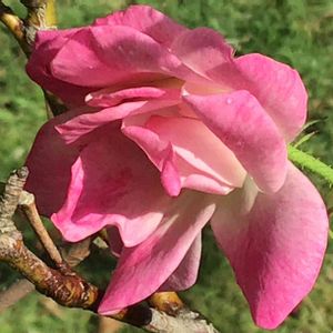 実家の🌹🌿✨ ブリリアント ピンク アイスバーグ 何度も咲いてくれるいい子💓 今年度 初 のお顔は、中心がロゼット咲きのような巻き巻き美人💋✨ 銘花 アイスバーグの枝変わりから出たピンク アイスバーグの枝変わり品種。 桃色にローズ色がのった花は3~5輪の房咲きで八重咲き。 春先や晩秋の低温時にはより濃く桃色がのる。 半横張り性でやや先端を下垂させ自然な樹形で花を付ける。 枝は細立ちでトゲも少ない。 節間も短く密に花を付け総合バランスがとても良い。 ベーサルシュートの発生が弱いので冬季の剪定では全体の1/2~1/3位まで切り戻しシュートを促すようにする。