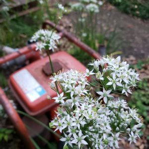 おはようございます。今朝の埼玉の気温は21度、涼しい朝です! 北側の雑草並みのニラの花が とうに使えない錆びたエンジンの脇に咲いてました。 これは、地下水を汲み上げる為のエンジンでした。
