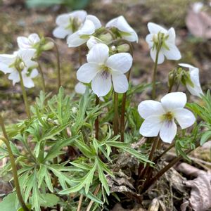 おはようございます😊 エイザンスミレかと思って投稿しましたが ペロさん ジュリアーノさんに教えていただき ヒゴスミレ‎🤍と判明しました(*^^*) ありがとうございます! Mr. マーさんの 🏷️素敵な水曜日 🏷️オシャレな粋曜日の花 さっちゃんさんの 🏷️白い水曜日♡ かねーちゃんさんの 🏷️白い貴婦人✨️ 廣花奈さんの 🏷️秘密の花園♡ しもむさんの 🏷️愛の花♡ 🏷️ありがとうの花❣️ に参加させていただきます♪ 「ヒゴスミレ🤍✨️」 初めましてのスミレ‎🤍 葉っぱがとてもスミレとは 思えないです😅 下向きでなかなかお顔が よく見えなかったです〰️ ヒゴスミレの特徴は ○ エイザンスミレは三裂に対し ヒゴスミレは五裂とか なかなか慣れないとこれが難しい ○ 距はエイザンスミレより細い 萼片に切れ込みがあるものもある ○ 色は白色 淡紅色もある 香りあり (嗅ぐのは全く頭に ありませんでした💦) スミレって難しい💦 今度見かけたら 香りを 嗅いでみます( *¯ ꒳¯*)クンクンスンスン スミレ科 分布 宮城県中部から九州内陸部 山地 明るい少し乾き気味の山道や尾根道 草地 それではみなさん♪♪ 今日もステキな1日を お過ごしください🍀*゜✨ ✩*⋆°ෆ*⋆°ஐ*⋆°✩*⋆°ෆ*⋆°ஐ*⋆°✩
