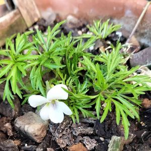 ヒゴスミレ。 これも日本に自生するスミレです。 山のスミレは葉っぱが切れ葉なのも趣があります。 スミレを育てるのは初めての分際でいきなり地植えしましたが、宿根でも実生でもいいから定着して来年も出てきてほしいです。