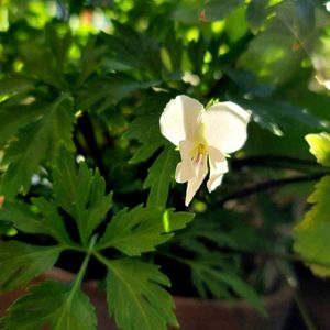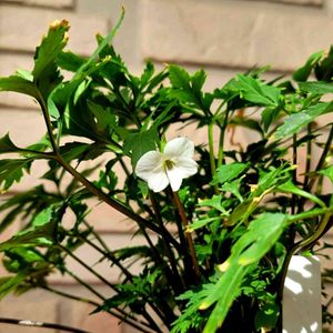 おはようございます👋 今頃でしょうか⁉️ ブロック塀の下の プランターにひっそりと 咲いてます💕 白い花にギザギザ葉っぱ🍀 お気に入りです😆💕
