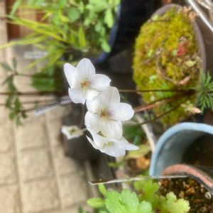 🌿 スミレ 🌿 1️⃣花友くまさんからいただいたアメリカスミレサイシン💙 2️⃣こちらもくまさんから…ヒゴスミレ🤍 3️⃣実家の里山で採取してきたマルバスミレの白だと思ってたらアメリカスミレサイシンとでました🤔 4️⃣銅葉スミレ 紫式部 5️⃣こぼれ種からのスミレ