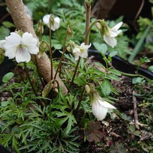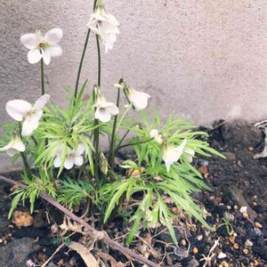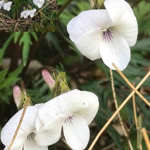 おはようございます🤗 数年前まで育てていたヒゴスミレさん、☆になったと思っていたら、いつの間にかこぼれ種から発芽してお花が咲きました~👋😆🎶✨ 白いべっぴんさんなお花、嬉しいサプライズです😊 素敵な日曜日を~(⌒0⌒)/~~